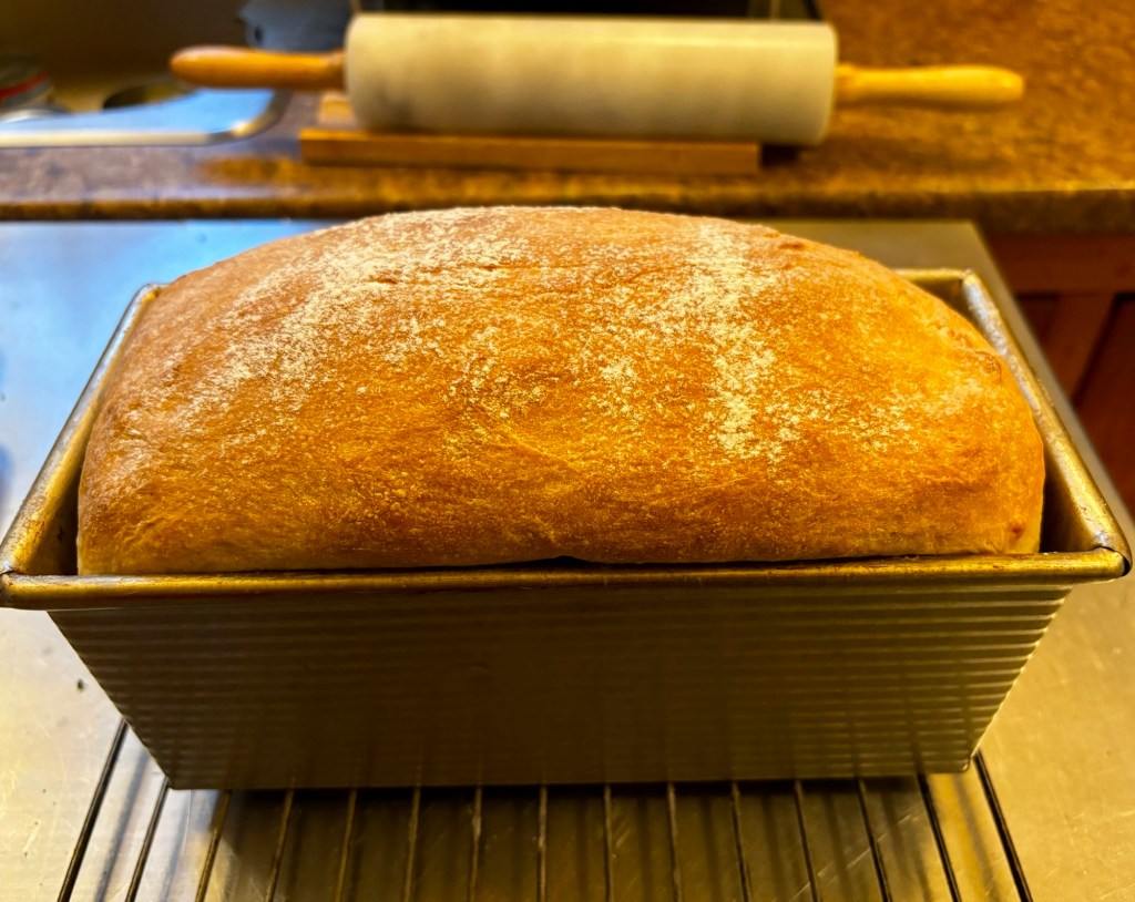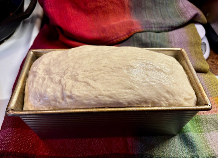 When the cycle completes, remove the dough and place in an oiled loaf pan, cover, and let proof for about an hour.