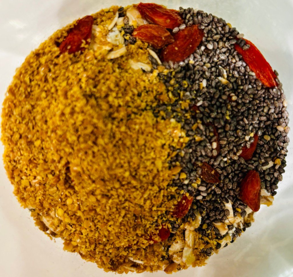When the cycle completes, do a quick release, open the pot, add the following, stir and put the top back loosely on top for five minutes: