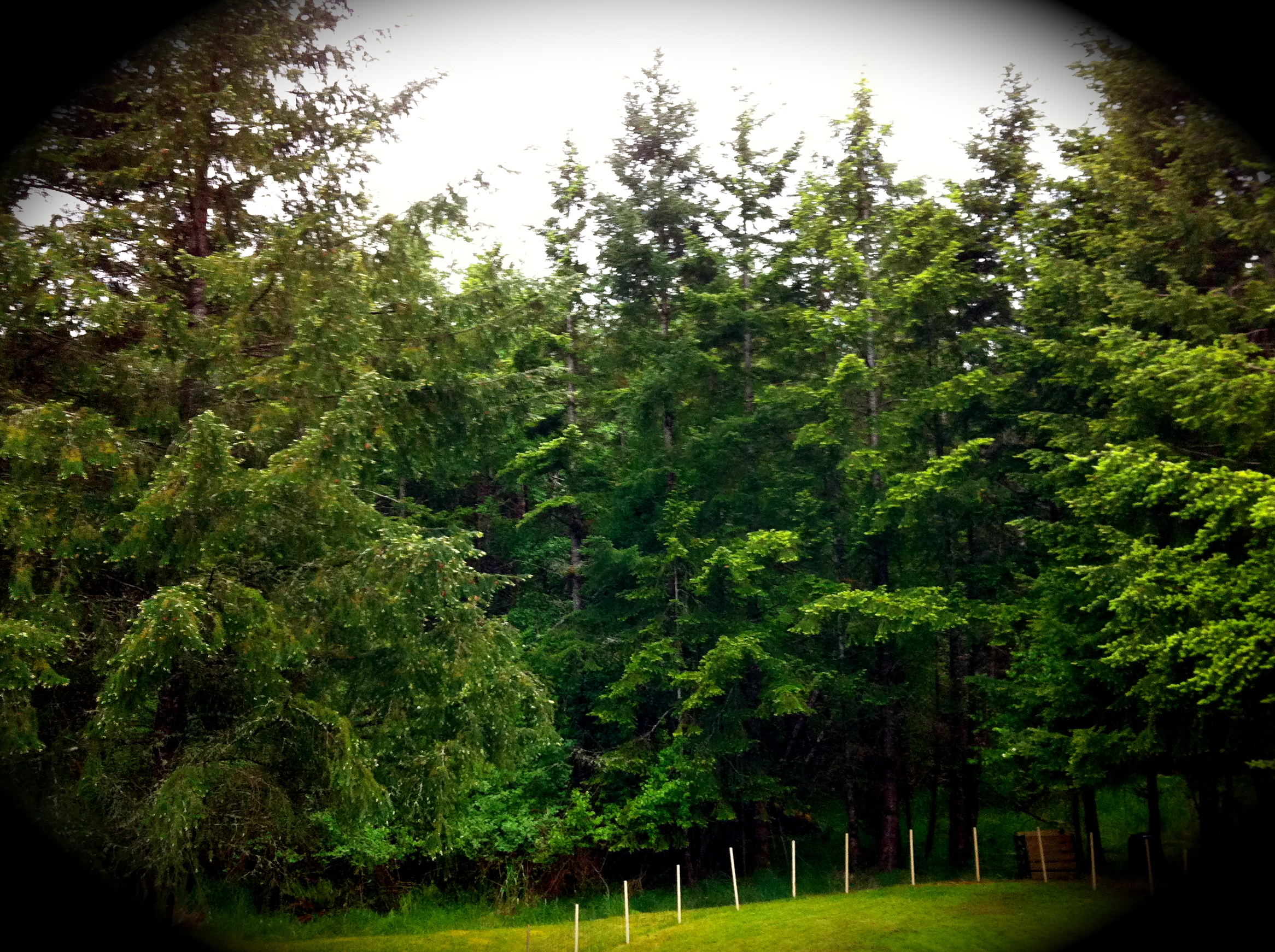 We spend four months of the year at our cabin on Denman Island–the least commercial of BC’s many gulf islands. It’s lovely and green and wild here, but, other than a tiny general store, there’s no place to buy groceries on the island, so we must take the little ferry across to Vancouver Island and travel into town. The ferry is prohibitively expensive, so we try to keep the trip to once a week, and at the end of the week, our larder is pretty bare of the fresh stuff…particularly when we’re committed to eating all plants! We were due to go into town today, but it was a rainy day in May, and a long hike followed by a book in front of the fire seemed much better.