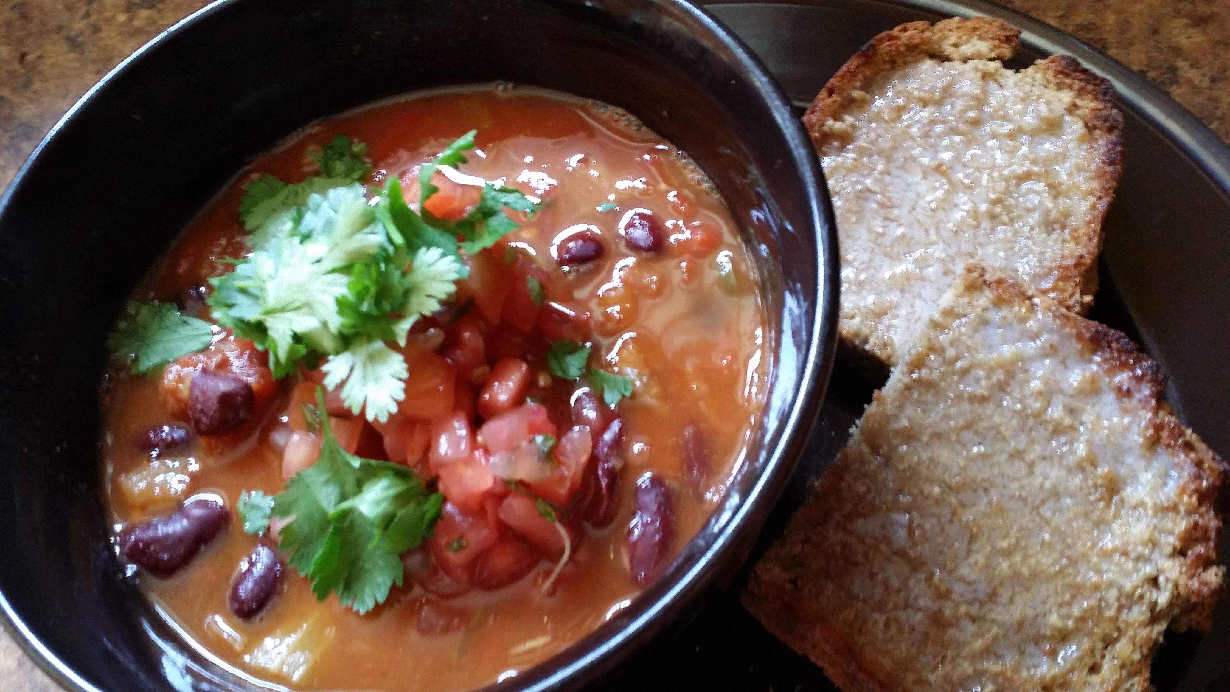I gave it to J for lunch with some vegetarian chili and he pronounced it delicious:
