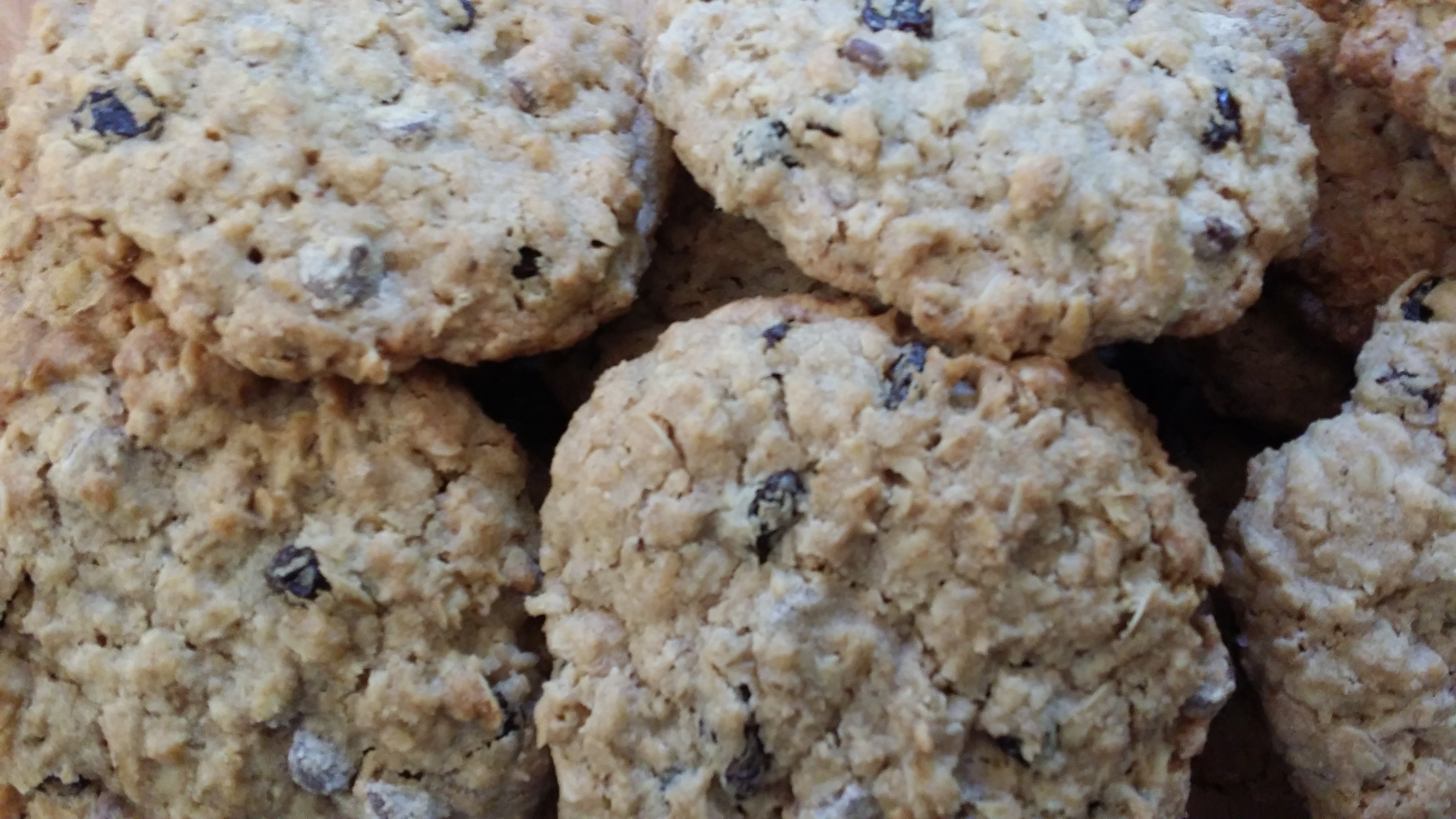 So I’ve been making J a big batch of buttermilk pancakes every morning (using his favourite Auntie J’s “complete” mix–haha), and then last evening he had a craving for a nice big oatmeal cookie, so I made a big batch from this Cooks Illustrated recipe that he favours.