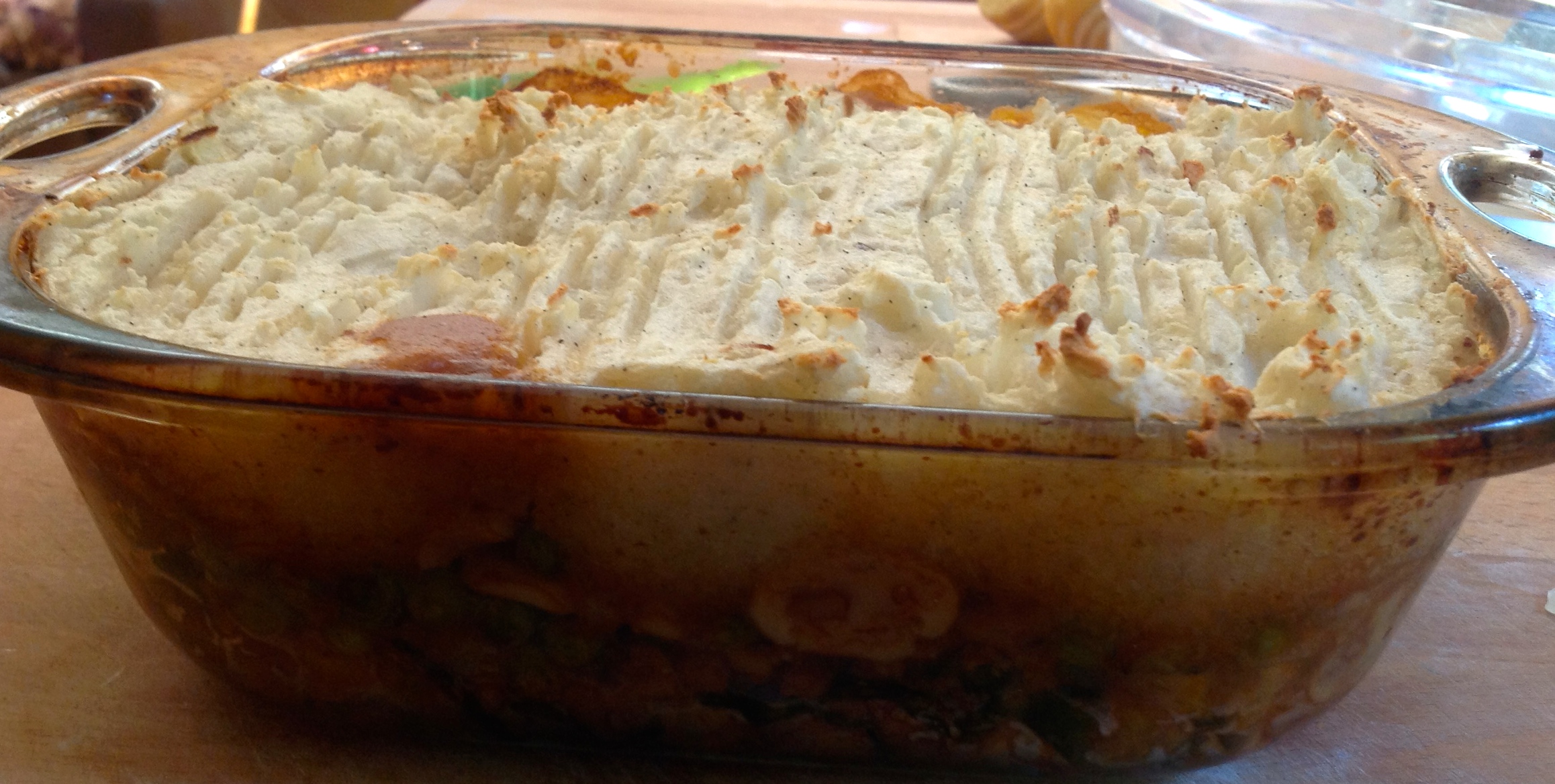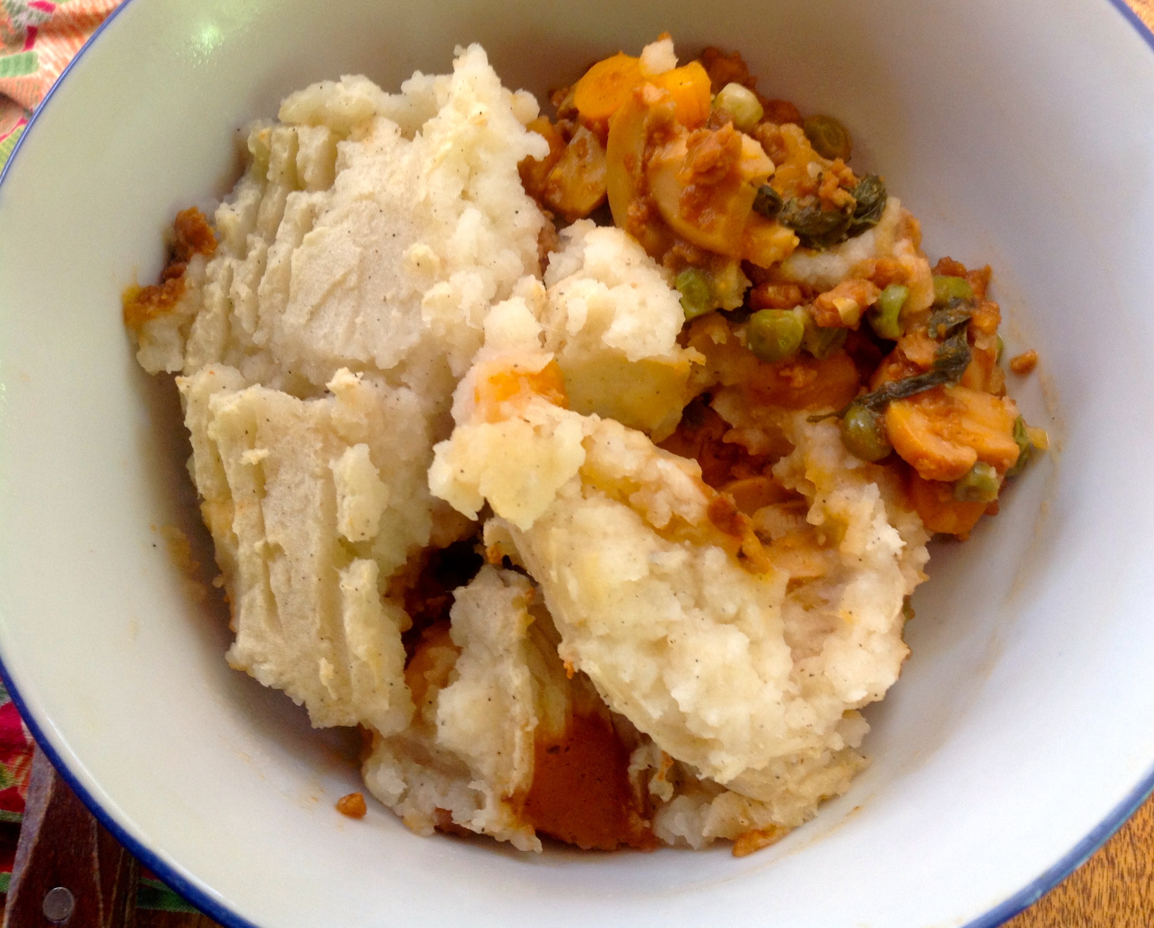 I’ve adapted it from this recipe and used the Post-Punk Kitchen recipe for mashed potatoes (though I left out the olive oil…with no discernible difference)