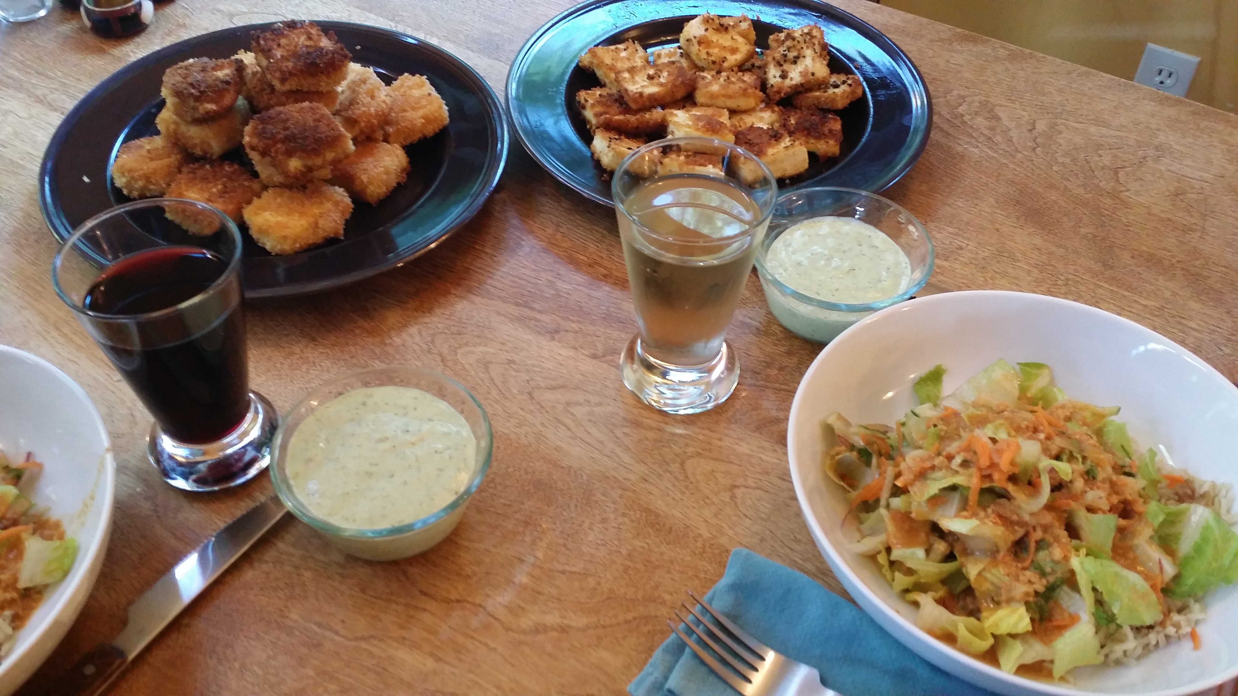 A very nice surprise was the vegan ranch dip that was part of the recipe, and which I adjusted by using fresh spices, etc., instead of dried (except for the dill).