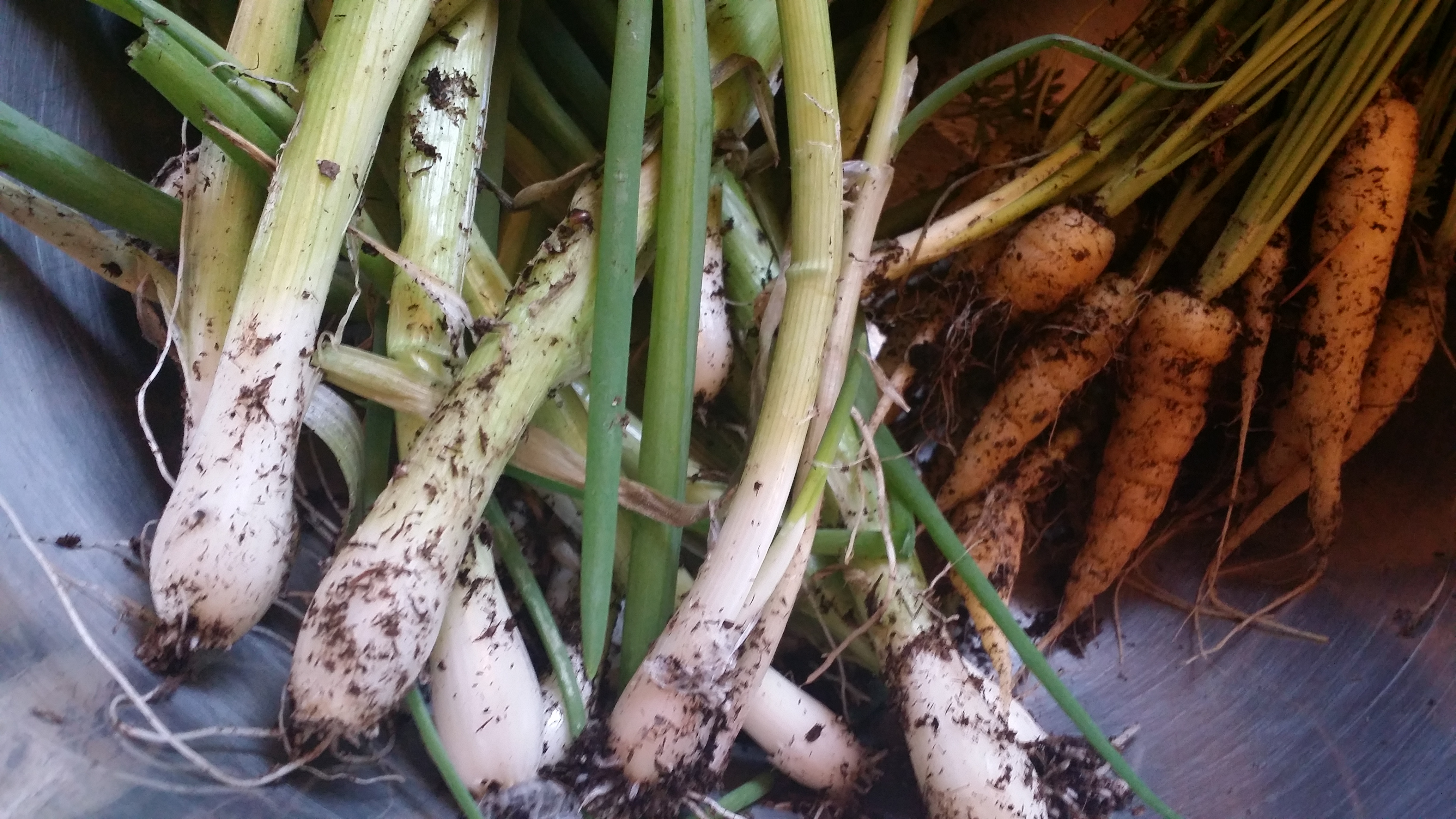 …tiny, second-harvest baby carrots and fat green onions…