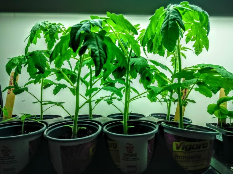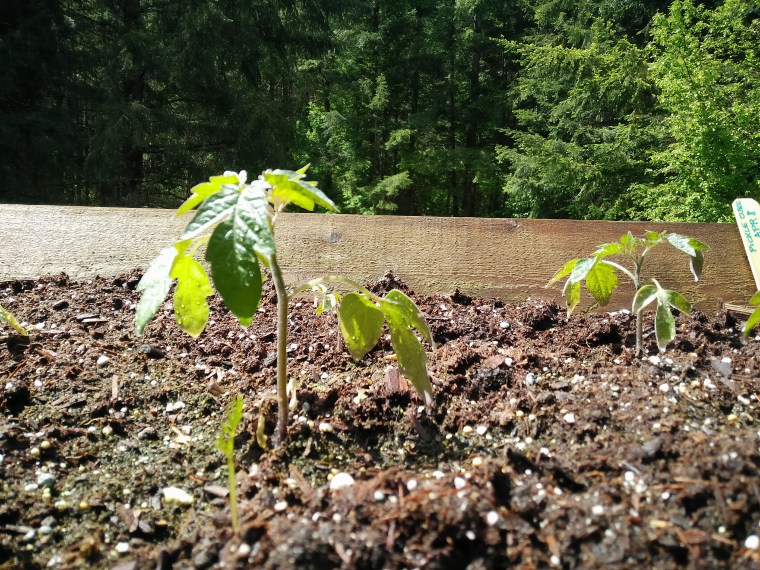 Before we left, I hardened off and transplanted half of my Sweet One Million tomatoes outside and kept half inside under the grow lights. The difference was rather profound: the ones under the grow lights have fared much better…