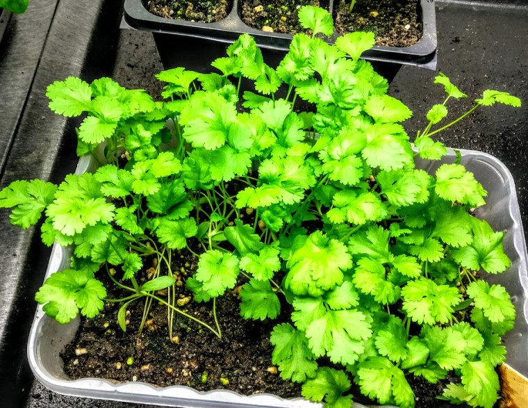 I was also delighted to find a wonderful smelling batch of fresh cilantro under the grow lights! The cilantro seeds I started outside have barely emerged from the soil, but it is awfully cold this year. Indeed, we’ve been having fires in the wood stove every evening since we arrived back at the cabin.
