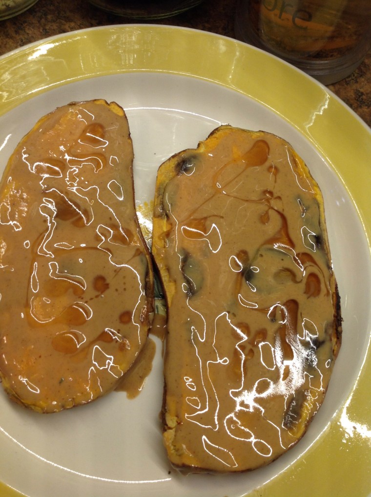 As I’ve no doubt mentioned hundreds of times, I LOVES me some peanut butter. Indeed, after discovering sweet potato toasties, I think I’ve eaten my two favourite foods together (peanut butter and potatoes) every damn day since!