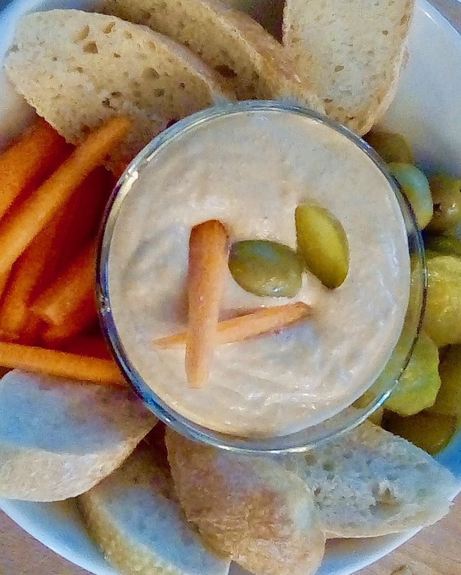 And so I give you a recipe for a lovely smooth dip made of cannellini beans. It is quite scrumptious and tastes surprisingly different from my regular hummus, though the other ingredients are the same.