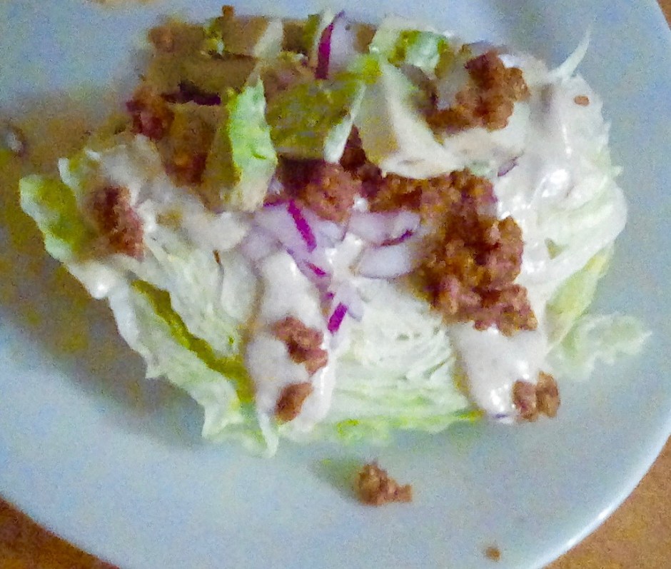 As I’ve mentioned in the past, James is highly suggestible when it comes to food: so apparently he read the word “wedgie” and thought, “Hmmmm….now a nice wedge salad would be just the thing!”