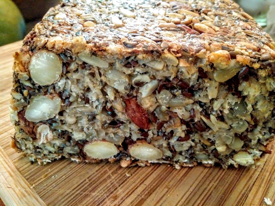 I’ve been looking for a healthy, filling bread to eat with soup or a fruit salad and today I stumbled upon just the thing in this post from mynewroots.org. I was a teensy bit worried because I once made the seed bread from The Happy Pear and it was so dreadful I had to bin it!