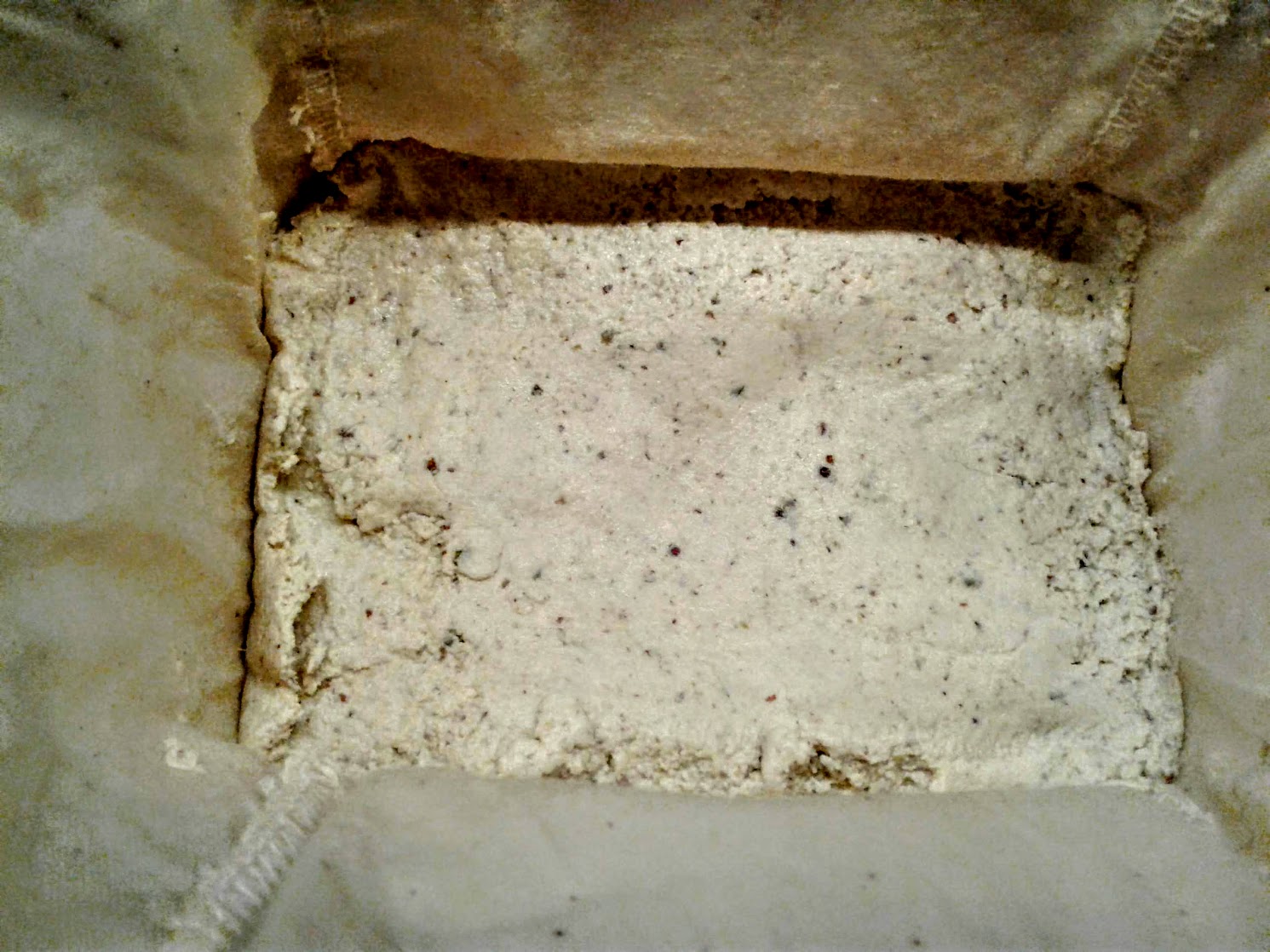 I set mine up in my tofu press so it would get firmer, but, as mentioned above, it’s delicious right away as a cream cheez!