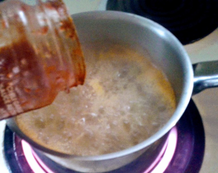 In the last few seconds, add some Sambal Oelek to add a bit of heat to your soup: