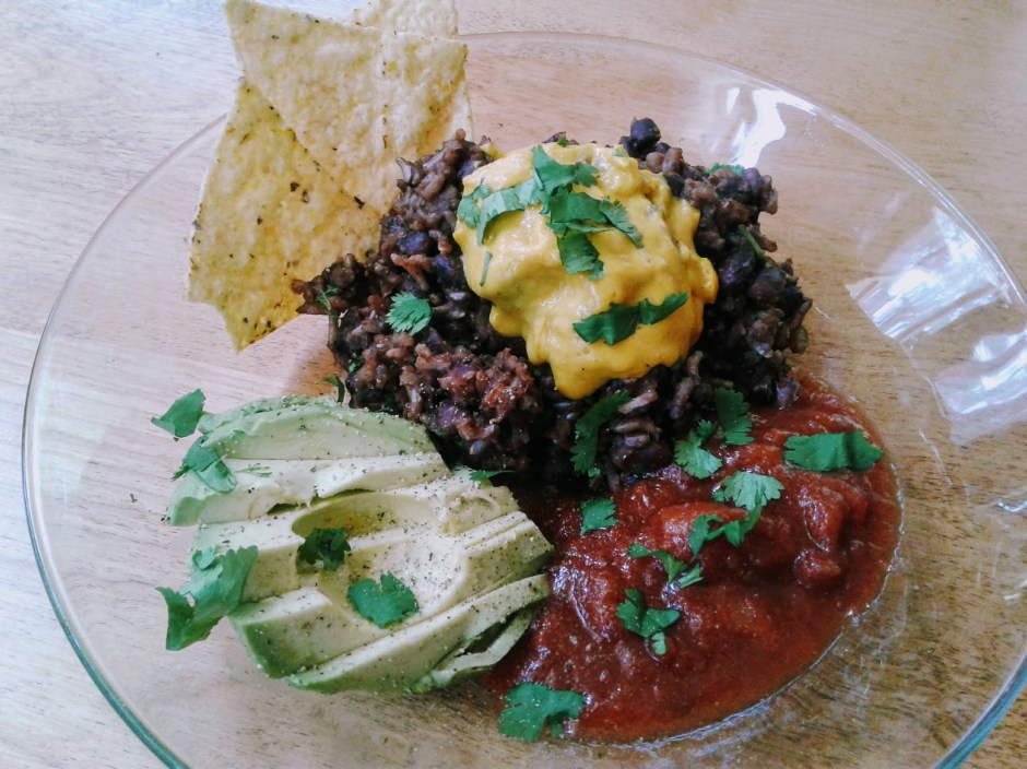 I used the beans and rice for burritos for dinner and, in spite of his dread of beans, James absolutely loved them and asked for seconds (which shows he wasn’t just being polite!). I used lentil tortillas and added coleslaw to the beans and rice inside the burritos and topped them with some of my smoky cheez sauce, salsa, avocado, and cilantro.