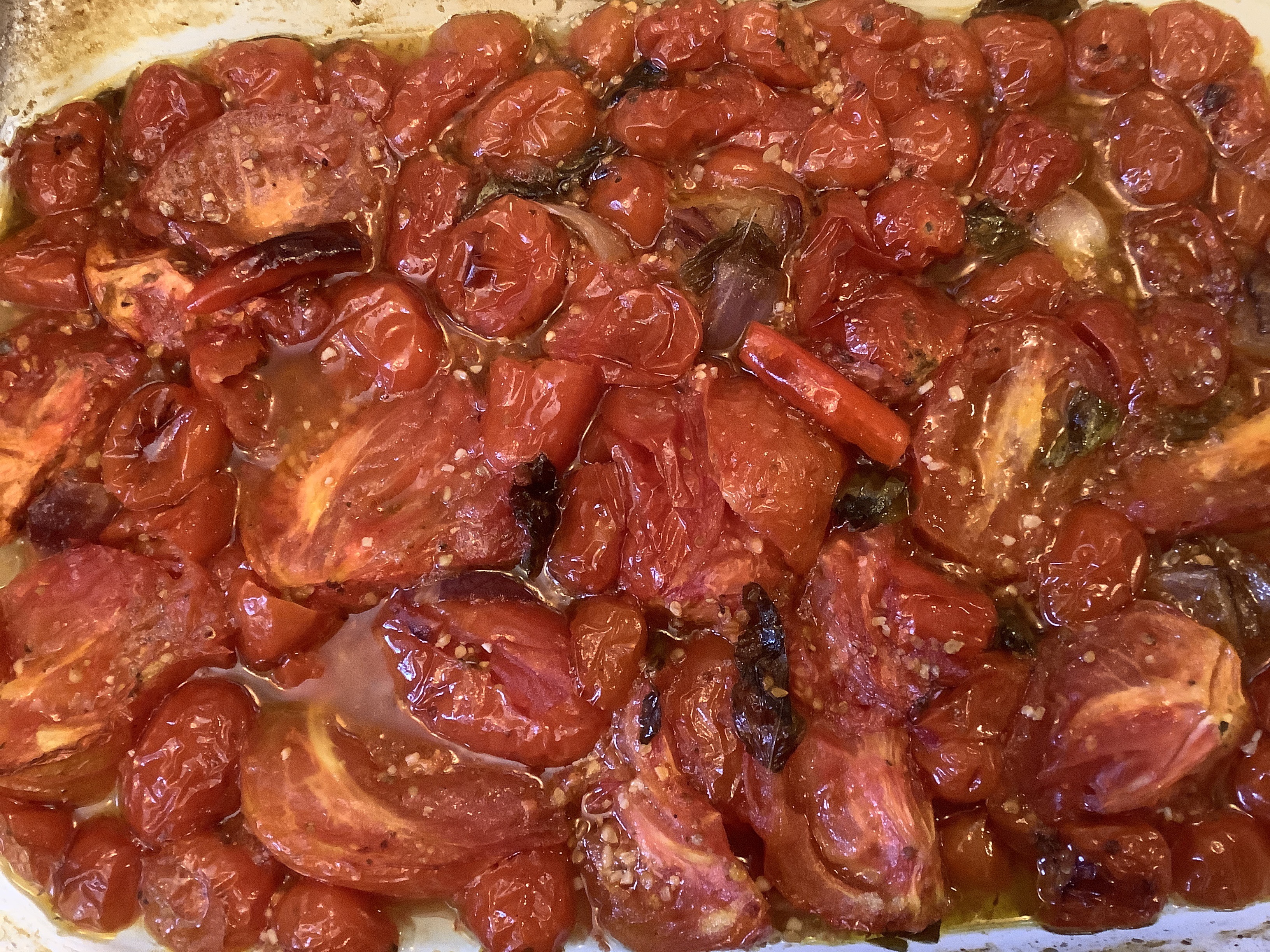 Even though our own tomatoes–rogue and otherwise–remain green, we’ve been on the receiving end of some lovely ripe tomatoes from a number of friends and neighbours.