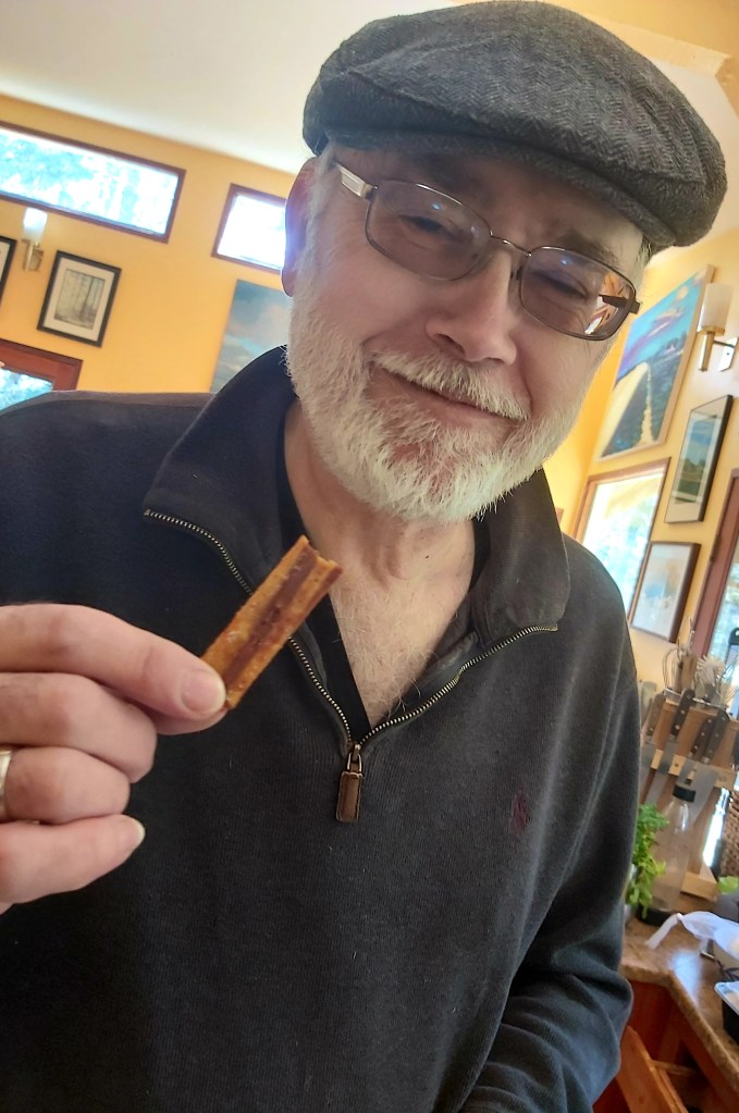 I was fasting until 4:30PM today, so I had James doing the taste-testing and made adjustments based on his notes. After I finished and started frying up the strips, James was so impressed, he wanted to try a BLT. I obliged and he pronounced the result delicious!