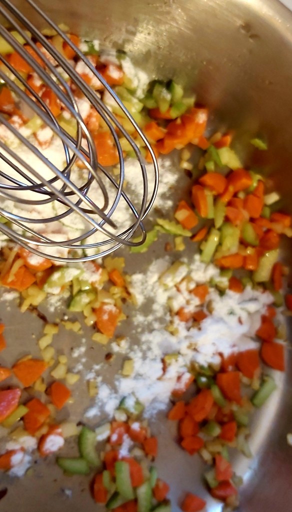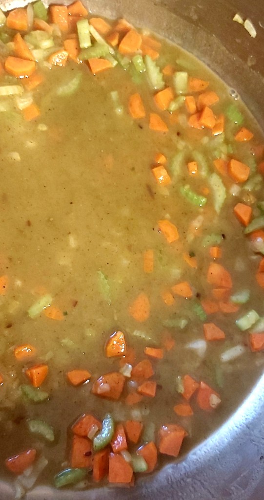 - 2 – 3 cups vegan chicken broth (I used veg broth and added 3 TBS vegan chicken broth powder)