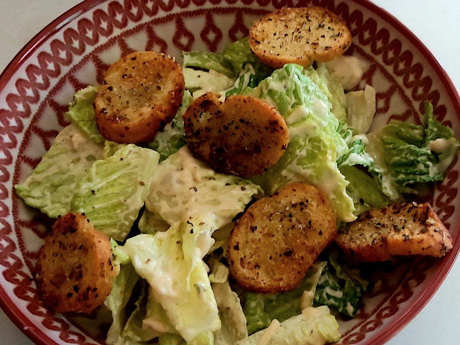 Once they’re nice and crispy, add them to your delicious Caesar salad!
