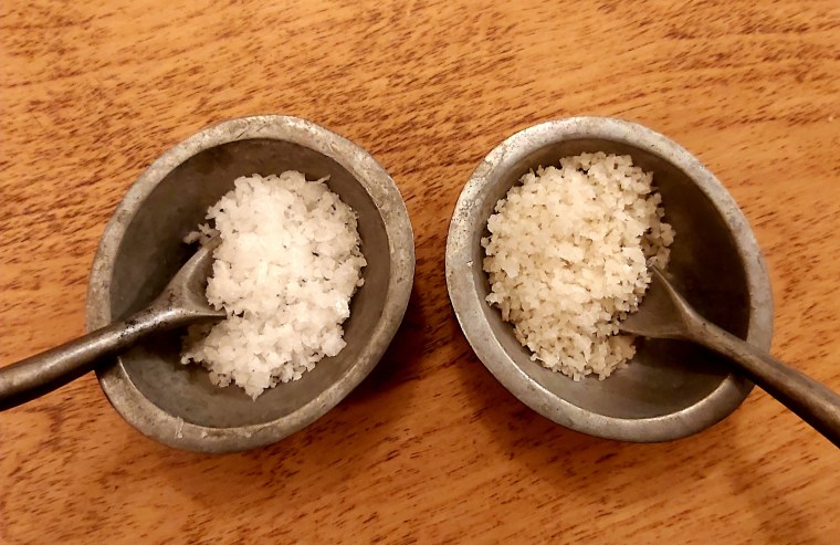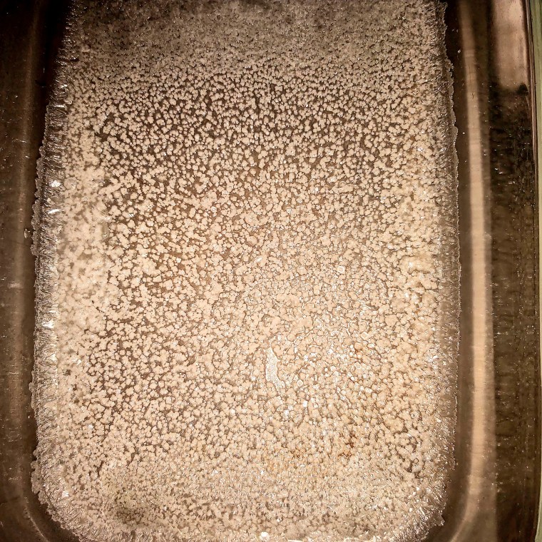 After Dana’s salt experiment of a couple of weeks ago and my continuation of that project, I decided I wanted to try to create flaky salt from seawater without going through the process of making grainy salt first, redissolving, and dehydrating.