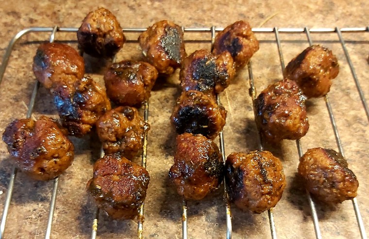 I prefer the smaller meatballs, but the pictures here are of the larger, one-ounce meatballs.