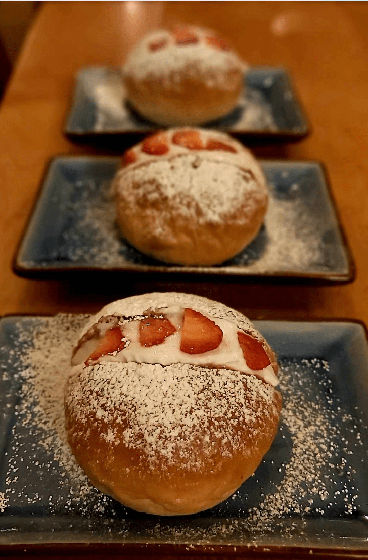 I have to say, these vegan Devonshire Splits are remarkably easy to make and quite impressive looking (and tasting!). Em prefers the strawberry, but I prefer the chocolate. James enjoyed the strawberry and seemed to not quite approve of the chocolate split–haha.
