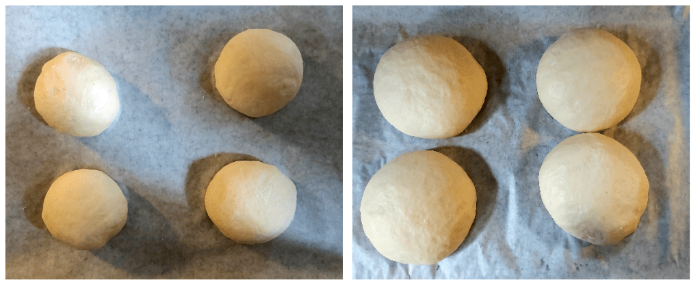 Place the buns (well apart) on two parchment-covered baking trays and cover loosely. Let proof in a warm spot for forty-five minutes.
