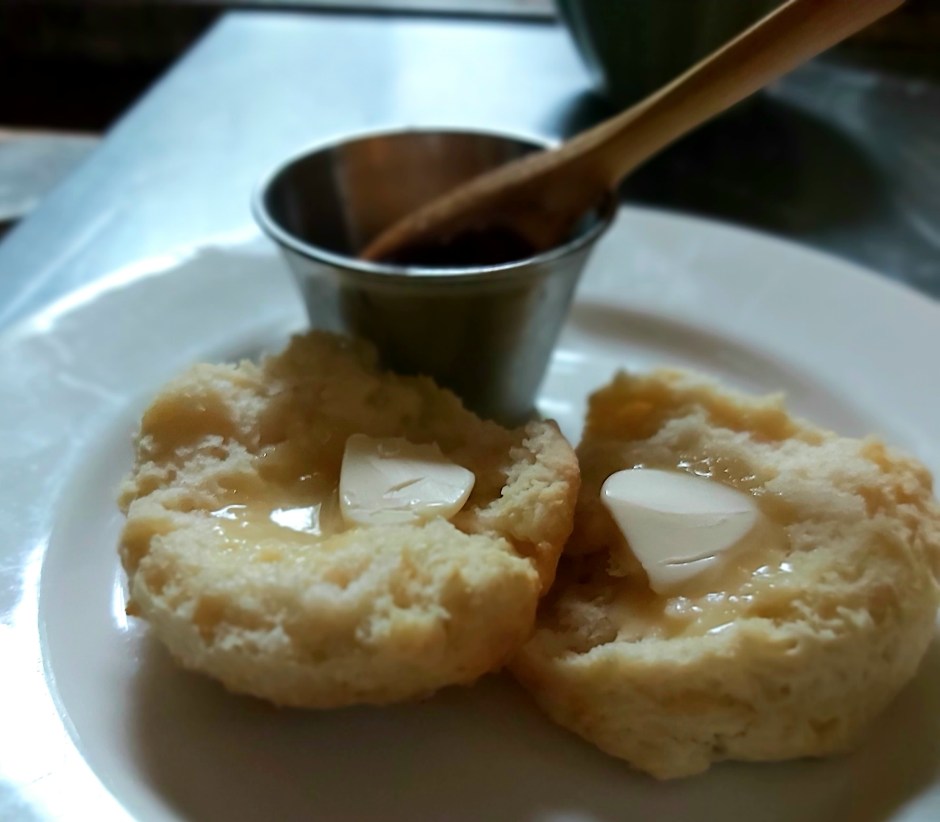 James wanted his biscuit with a bit of strawberry jam, and I enjoyed mine with some of my lemony lentil stew. Delicious!