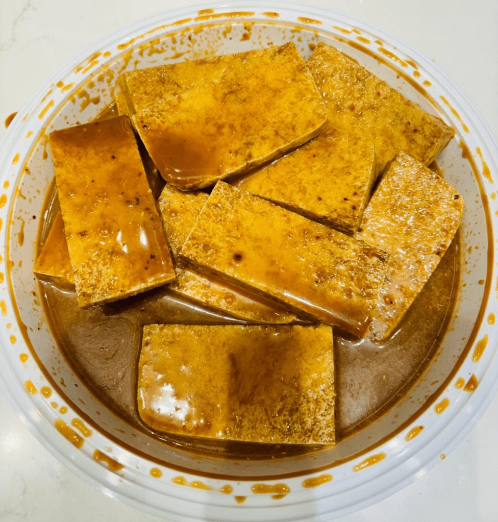 - 2 one-pound packages of tofu, frozen, thawed, and pressed