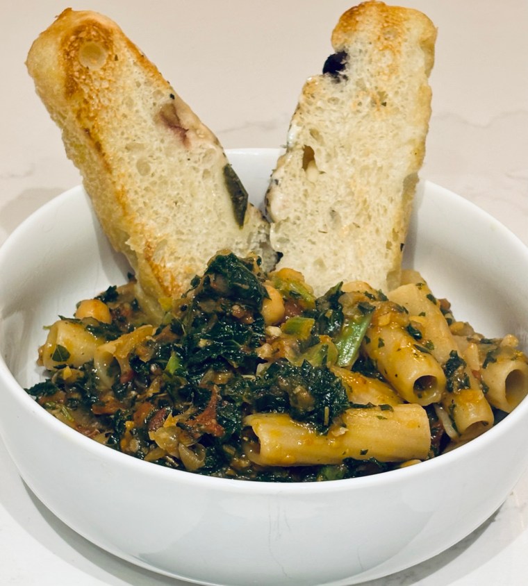 When the pasta is done, stir in…