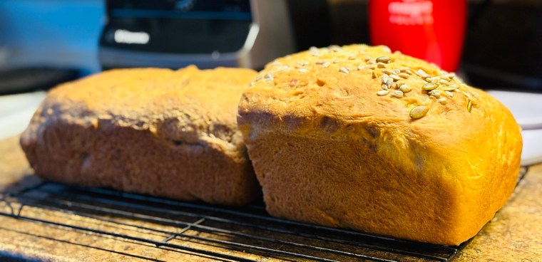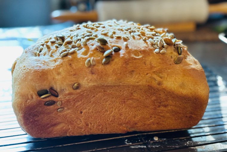 Here’s the regular loaf (which I misguidedly topped it with pumpkin and sunflower seeds, most of which fell off anyway):