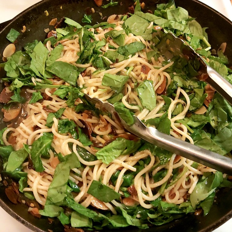 Lemony Noodles with Almonds and Spinach